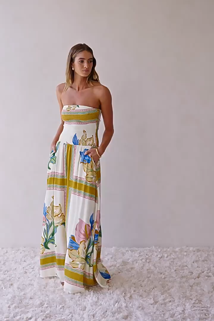 Tropical Scarf Print Strapless Maxi Dress