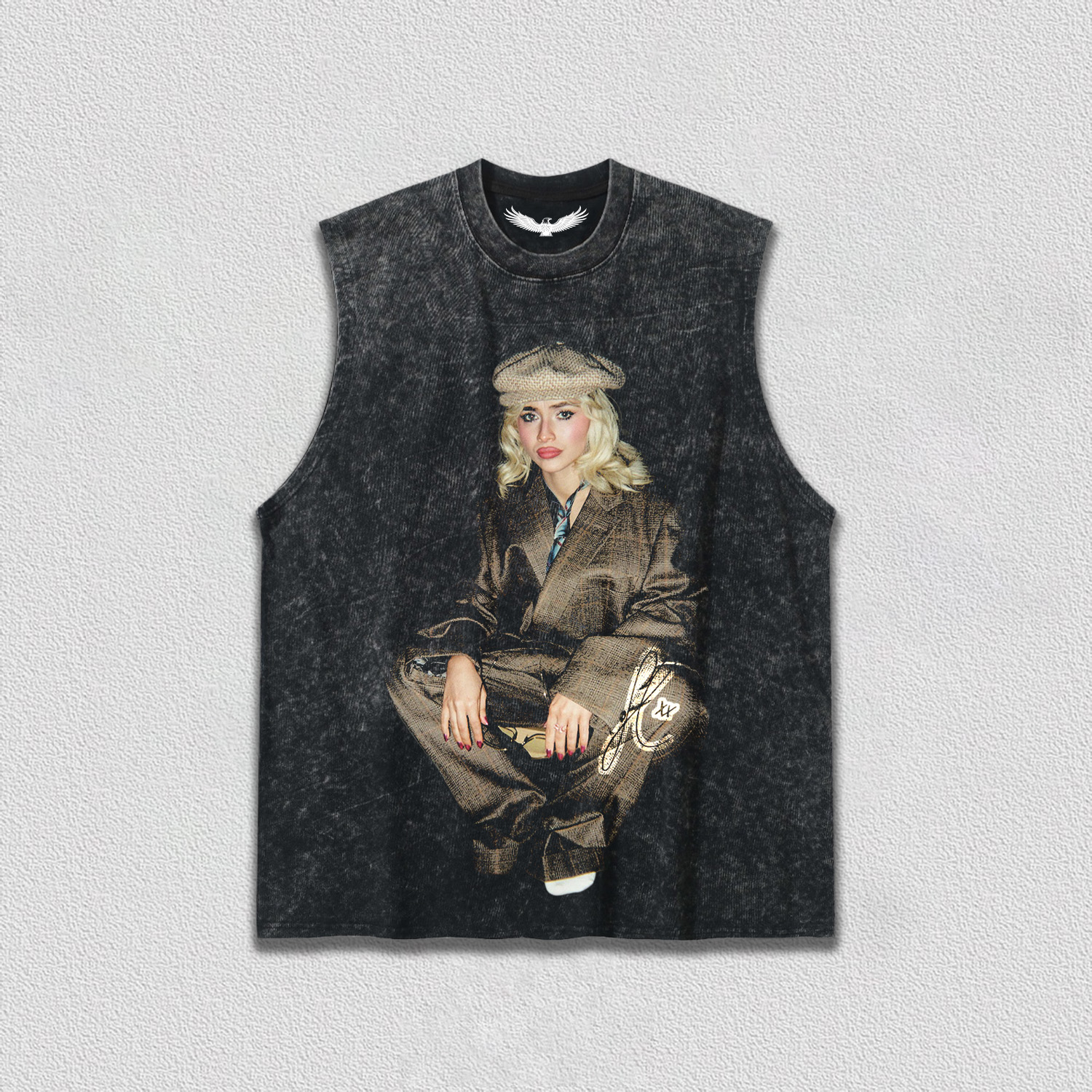 Distressed print, twill?taped shoulder?to?shoulder